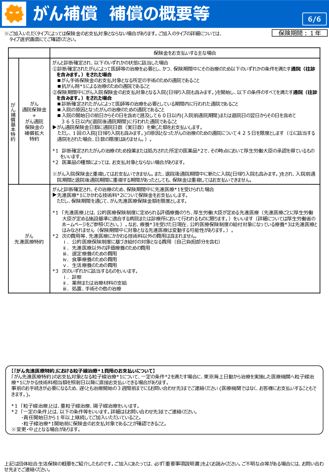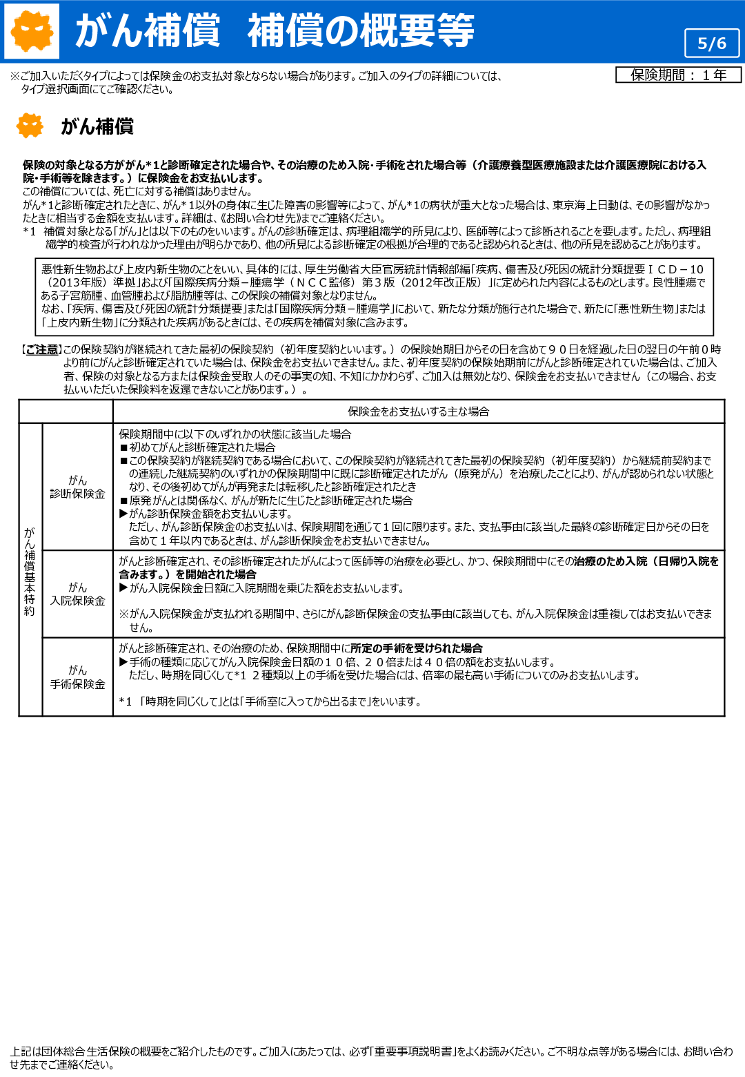 がん補償の概要等(2023年10月1日始期契約~)