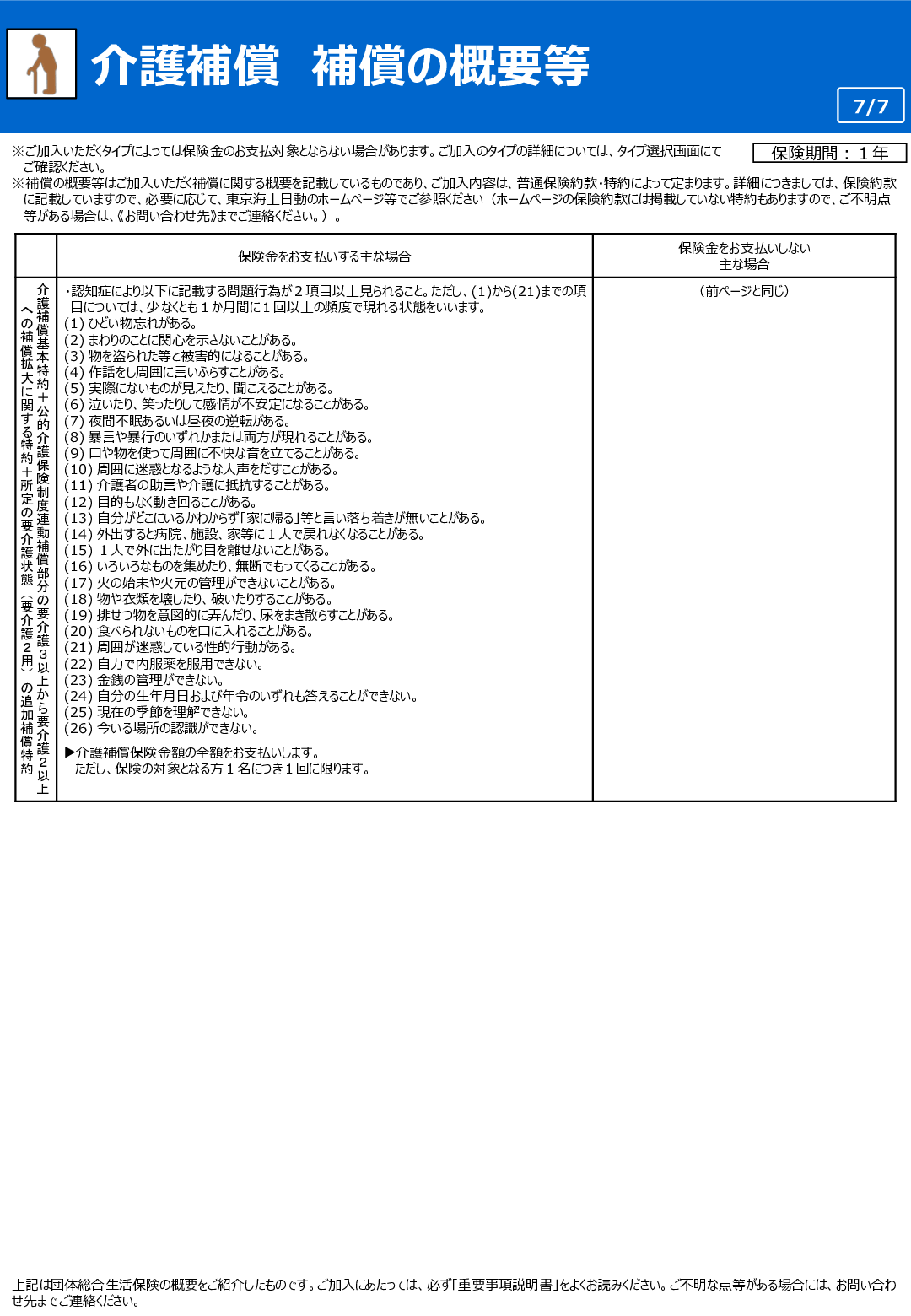 - 東京海上日動所定の要介護状態(要介護2用)*1と診断され、その状態が90日を超えて継続した場合